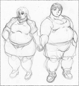 That is very erotically drawn -I love how its nicely expressed. Wonder if you'd make a gay version of this? An encouraging male feeding our chubby man here.