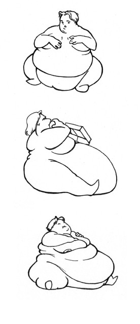 A stupid conversation, which I put with this stupid doodle. They seem to fit each other quite nicely. heh. Just a random obese fellow floating there I guess? I dunno what the hell... anyway, there it is.