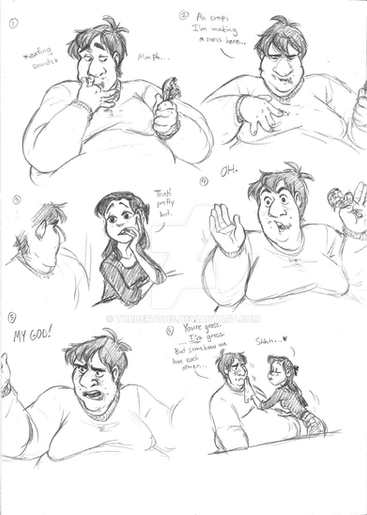 Elementary! This boy merely enjoys food, the girl gets no pleasure out of it