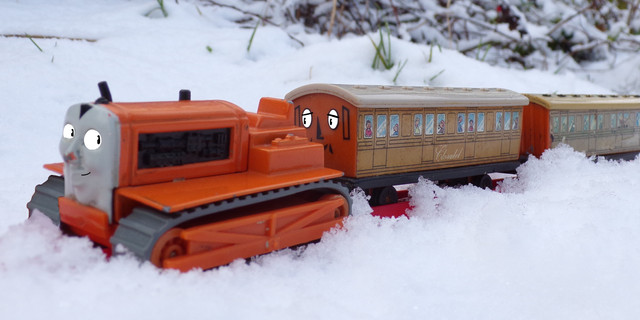 Thomas with Annie and Clarabel alongside Trevor and Daisy on a winter diorama at the museum at New Romney station.Related content
