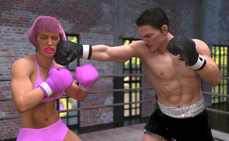 I love the look on her face; she's enjoying this.Β Is she going to be nice, and knock him out, or keep having fun using him for a heavy bag?