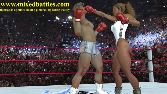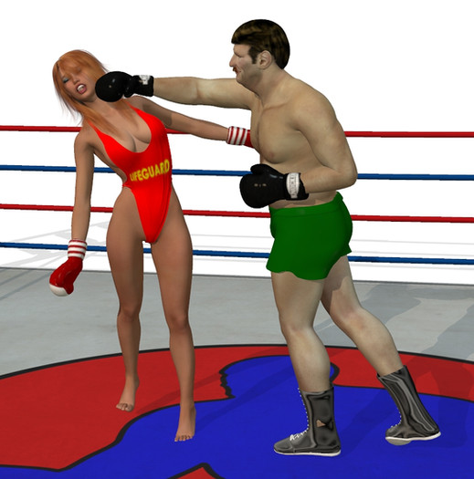Looks like the blond is aroused by the male getting the worst of it.Β
