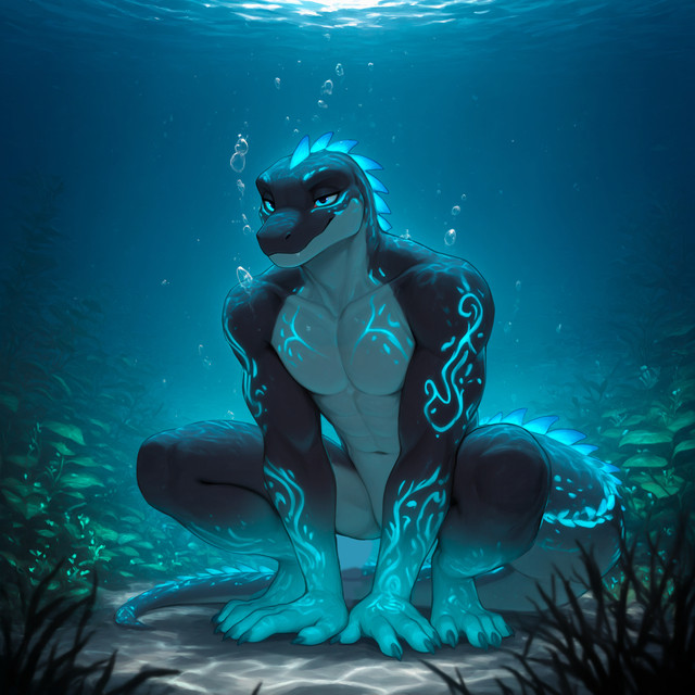 #scalie #ai #anthro #anthromale #bioluminescent #lizard #male #malelizard