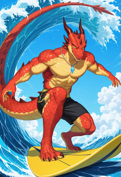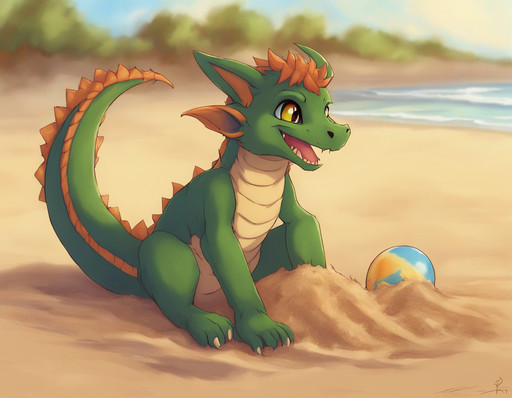 #dragon #beach #scalie #ai #anthro #lizard #male #sandcastle