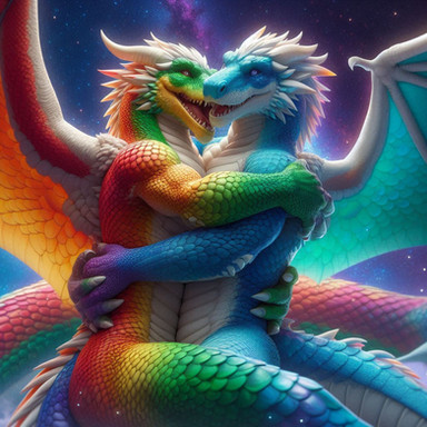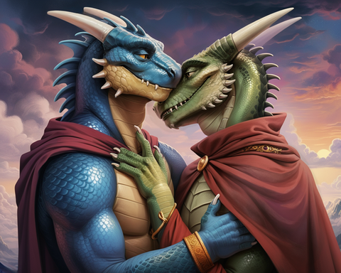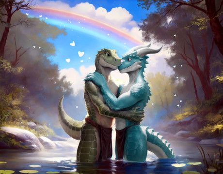 #scalie #reptile #lizard #ai #anthro #boyfriends #hugging #kobold #love #rainbow