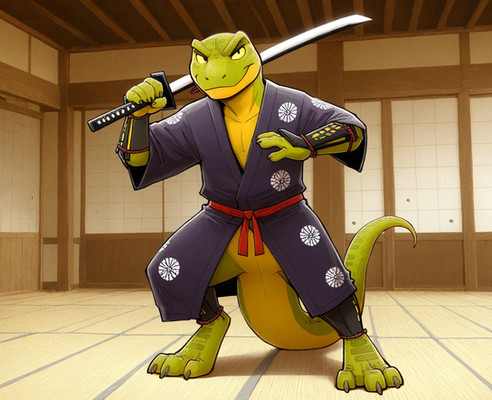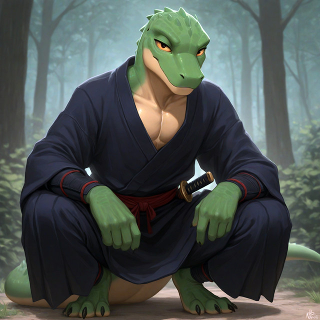 #lizard #ai #anthro #anthromale #lizardanthro #male #samurai #malelizard
