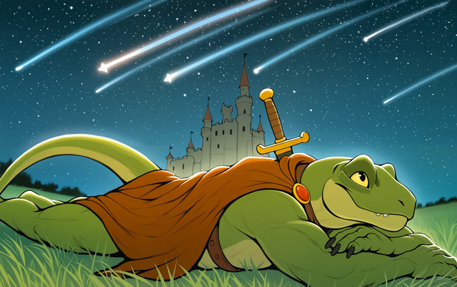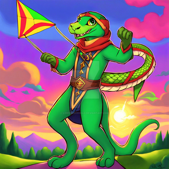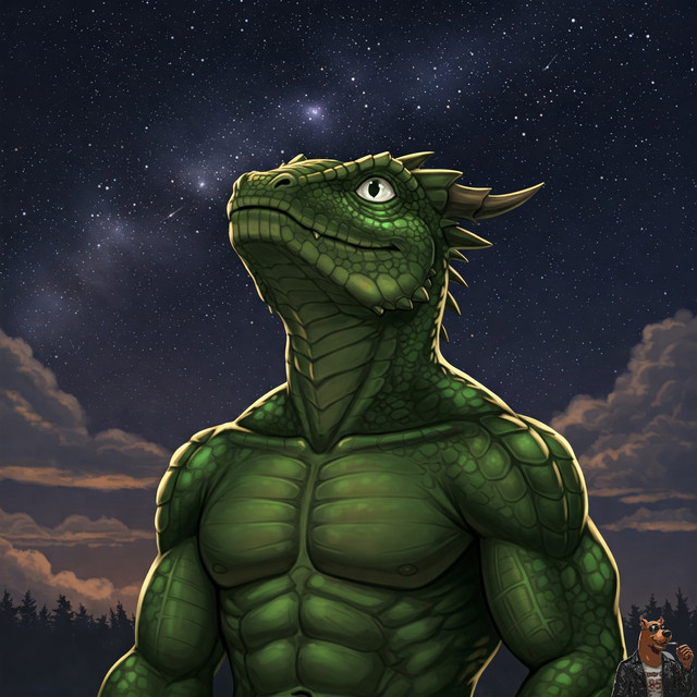 #reptile #lizard #adventurer #ai #anthro #fantasy #male #scalie #shootingstar #sunset #furrymale