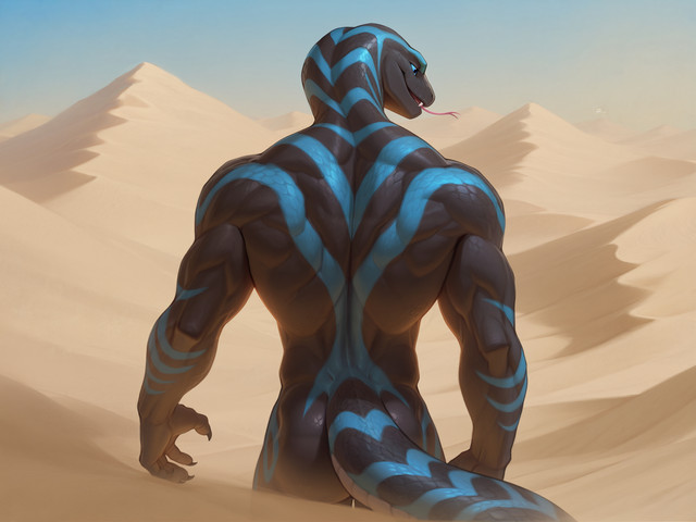 #scalie #snake #reptile #ai #anthro #desert #male #sand