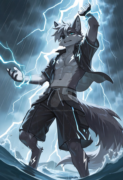 #ai #anthro #canine #husky #lightning #male #myoc #oc #powers #lightningpowers