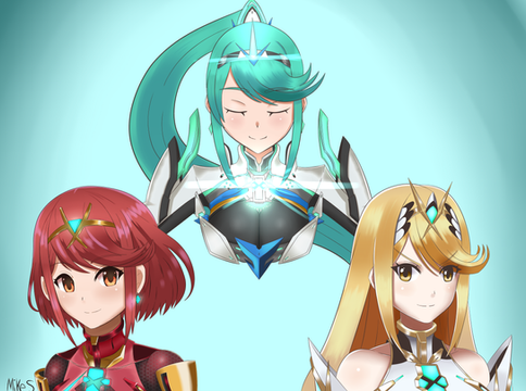 First off, Xenoblade Chronicles 2 is such an amazing game with a strong and tragic plot and character development. I managed to get all the special crystal summons, even the rarest of them all: KOSMOS (HAD TO LIKE GRIND SO MUCH CRYSTALS!) I recommend this game 10/10 and get ready for the feels.T-TThis was a difficult process at first with sketching out the characters. I felt like I could have done more with the background but I guess I'm not good enough yet. Sorry if the shading and color reflection on the characters look weird (I'm still practicing with understanding light and shadow.) Hope you like it.
