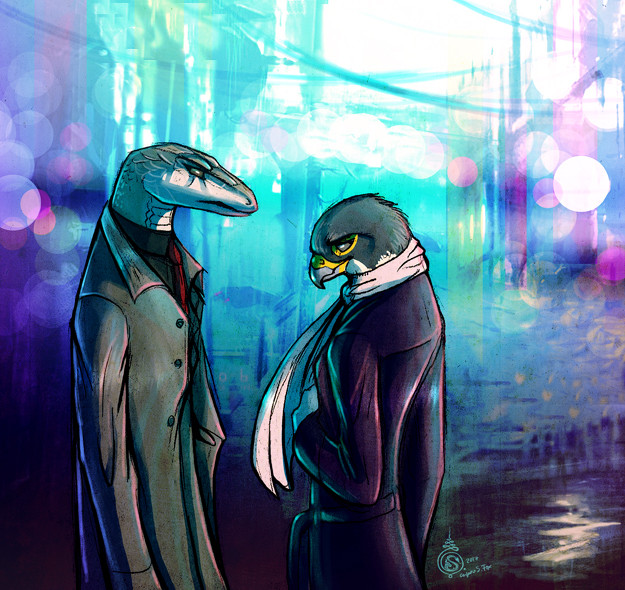 Me (right) and my good friend Alex Grim (left). Just cool art in retro wave styleArt by Firael: