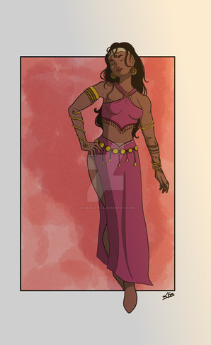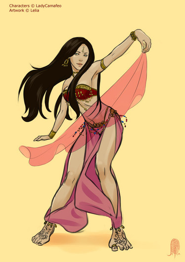 #digitalart #digitalpainting #commission #originalcharacter #fantasycharacter #dress #barefoot #bellydancer #fans #gyaru #tattooedgirl #dancergirl #tannedskin #barefootgirl #fharalys