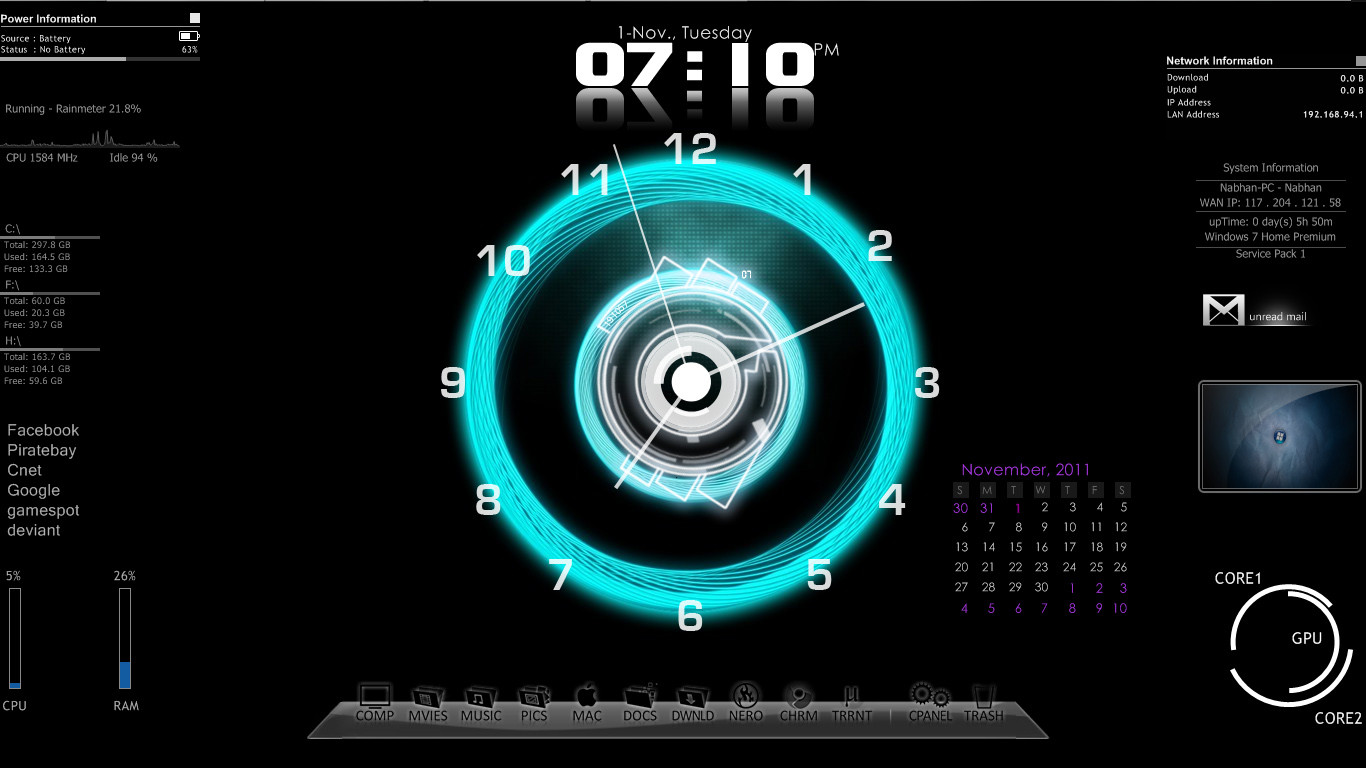 This is easily the best Rainmeter skin I've seen. Gorgeous, functional and so delightfully easy to customize.