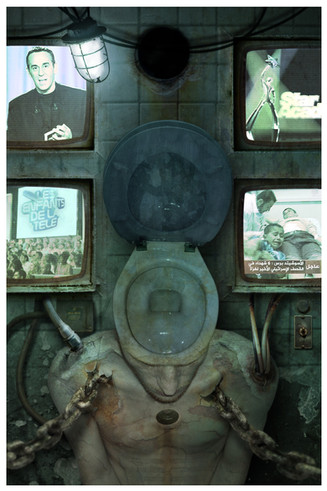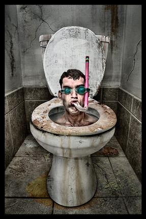 Wow I really like this work. I also got that stock of public washroom and was gonna use it in similar way, make hand coming out of there or something. You did a nice job, good blending and textures, love the colors. I'll give you a favorite now, keep up the good work..