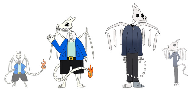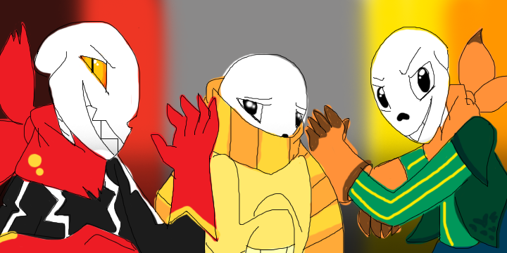 Including MercyTale!Sans (Soul), MercySwap!Papyrus (Waffles), and MercyFell!Sans (Shatter) (Without the kneepads, tail blade, and gauntlets)Despite being practically the same, Soul and Waffles don't get along. at all. Oftentimes getting into fights with eachother until either A) Error (or Ink. although normally its Error) break up the fights or b) the fights stress Shatter too much and they end up trying to keep him from crying.
