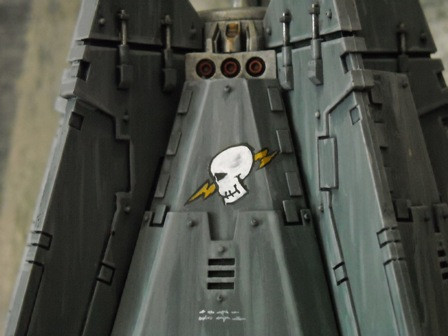 Nice colors and realistic rust and burn marks. It's really smooth looking. Love the Space Wolf badge on the side too. Was that already on the model or was it an additional piece? Or get it from another model set or something?