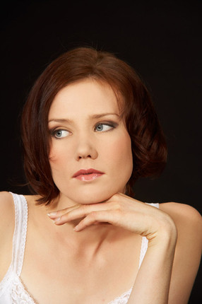 what a beautiful head shot I like how her hair is down, so you can see the length of it.