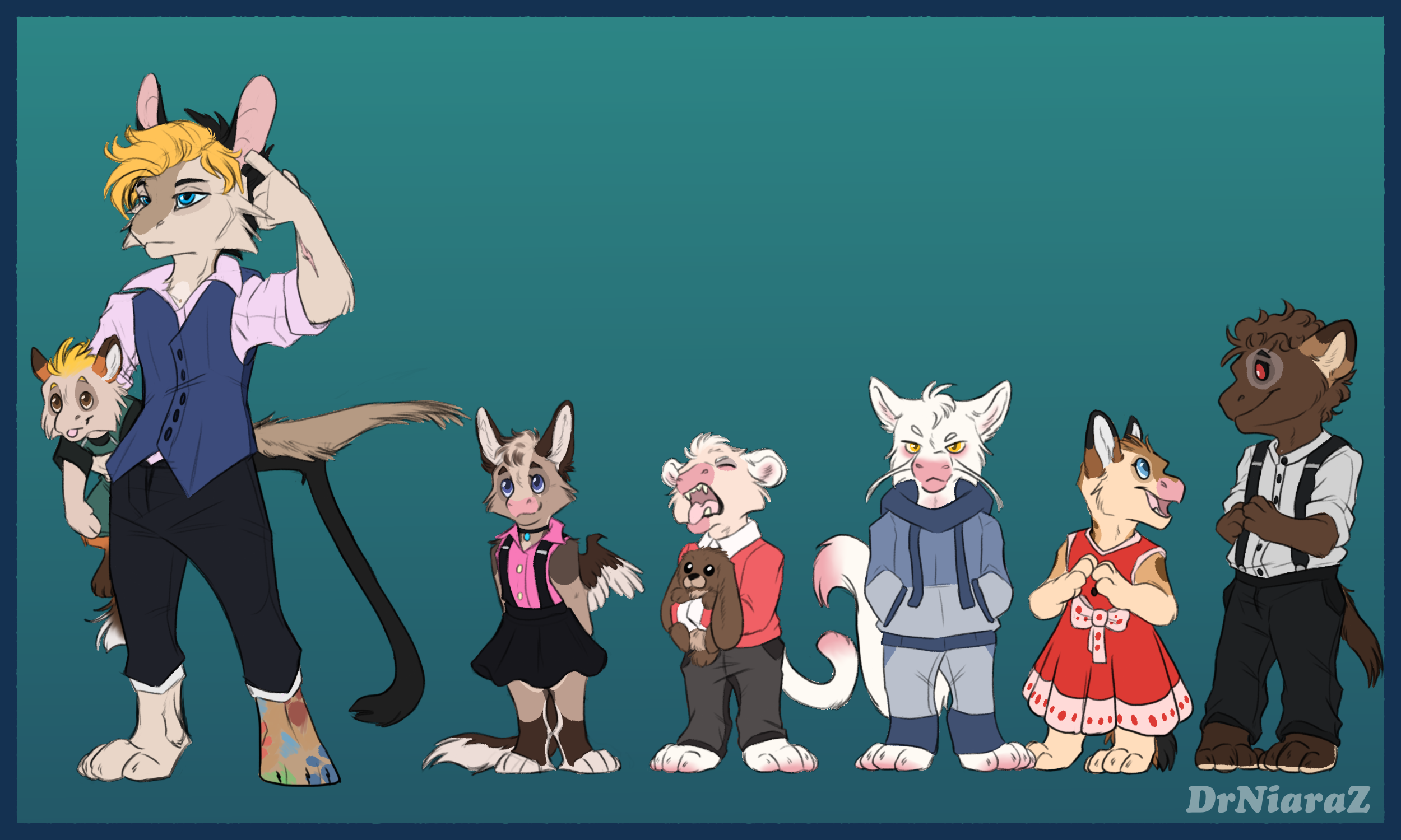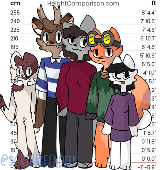#adorable #cute #digital #digitalart #digitaldrawing #drawing #fiendy #flurries #fox #furry #heightchart #husky #illustration #lion #oc #originalcharacters #tanuki #fiendyneko #art