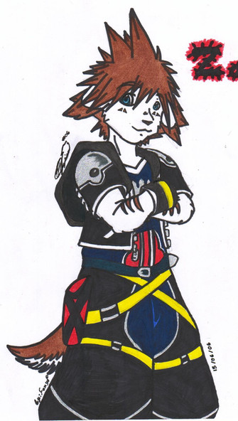 When got back from her trip she brought me a red panda who she had the twin of. it was her first day playing KH2 so we were using them as keyblades (we're NOT EVIL OKAY!) so then we decided to name them Roxas and Sora, so here's Roxas, i'm sorry i scanned this before i drew in the oathkeeper and oblivion in his paws XDSorry if it's ugly too you.