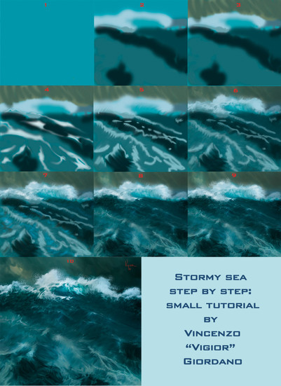 #digital #draw #paint #sea #step #storm #tutorial #water #wave #how