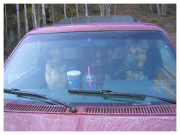 Star and Katie. You can hardly tell them apart! Katie's defining facial feature would be a scar on her muzzle from a run-in with a barbwire fence, during her time at the junkyard.Related content