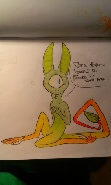 Darnit, I forgot to mention that his speech sounds like garbled or broken English. I keep forgetting things when it comes to writing bios for my own characters.