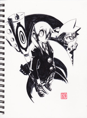 #anime #brown #colour #death #grey #lineart #manga #mask #scythe #stone #copicmarkers #maka #souleater #copicsketch #copicciao #copicdrawing #makaalbarnsouleater