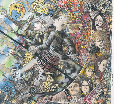 Oh my, this has taken an unimaginable amount of time. I don't event remember when I started sketching it, it definitely must have been a few years ago and I just managed to come back to it during lockdown. I started it with Arteza watercoloured pencils, but they turned out to be too greasy and looked pretty bad when treated with water (I really discourage you from buying them if you care about your drawing to look good). You can see it in Maka's inside part of the coat which I had to kinda leave messed up with Arteza watercoloured pencilsLineart --> www.deviantart.com/fighter-cha…