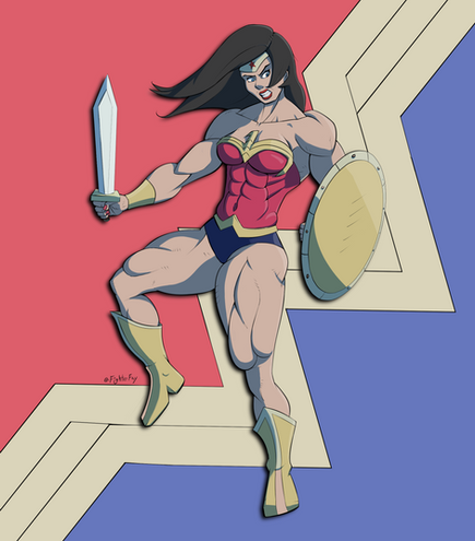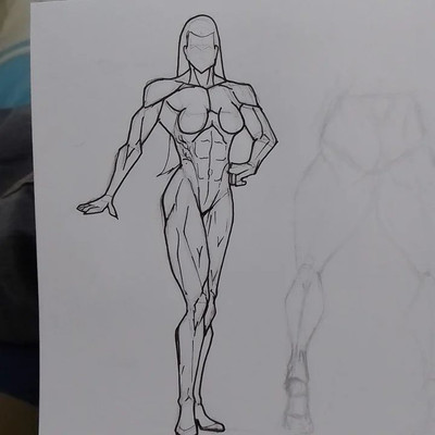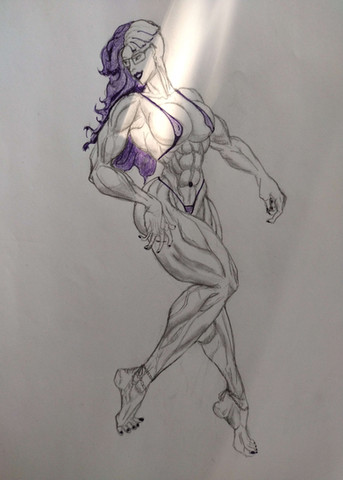 With a heroic pose and chiseled physique, she reminds us to never skip leg day.This is the latest piece in my ongoing venture into complex anatomy, with a focus on strong musculature. the focus on her thunder thighs was particularly fun and challenging.