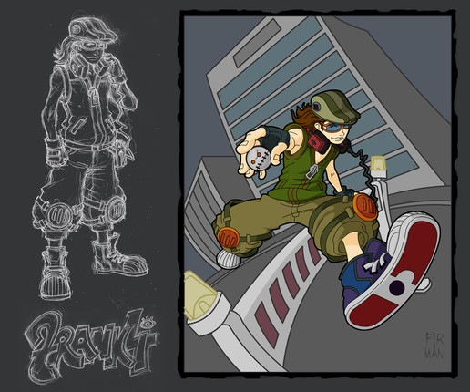 Finally...I don't even want to admit to how much time I put into this one. I tried to stick with the style of the game. From the character sketches (my dog chewed up my first drafts) to the background, to the fake video screen shot backgrounds, to the pixel version of him. I even designed an NPC specifically for the fake screenshots. The only thing I didn't draw was the logo.So yeah, His true name is unknown. He is only known by his Tagging name which is Nemo. He traverses the Shibuya subway systems with a backpack full of spray cans tagging the underground and erasing the noise. He keeps all of his pins displayed on his backpack.