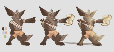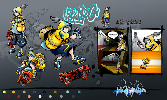 The sketchiness works excellently with the earthy tones. Really neat character design - very 'real' but still cartoony in a way.. I like it.