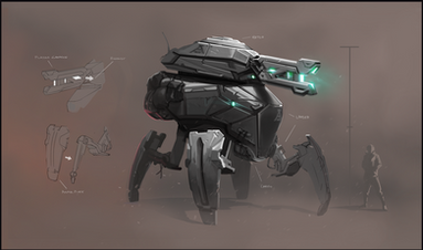 A large home for those who truly want to live on the barren planet, the mech relays messages with public satellites, gaining knowledge to where space debris will land, and slowly crawls out of harms way.
