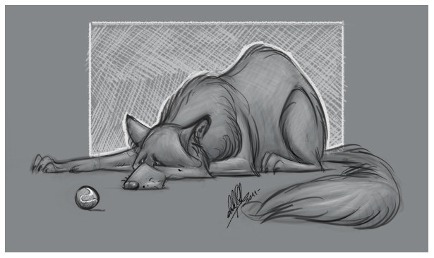 I've decided to take the break between seasons to bring my old sketches into a digital format. I'm personally enjoying the break from equines for awhile.The pencil drawing this dog is based on is [link] , which is 3 years old by now. I also made another version with different lighting- [link]