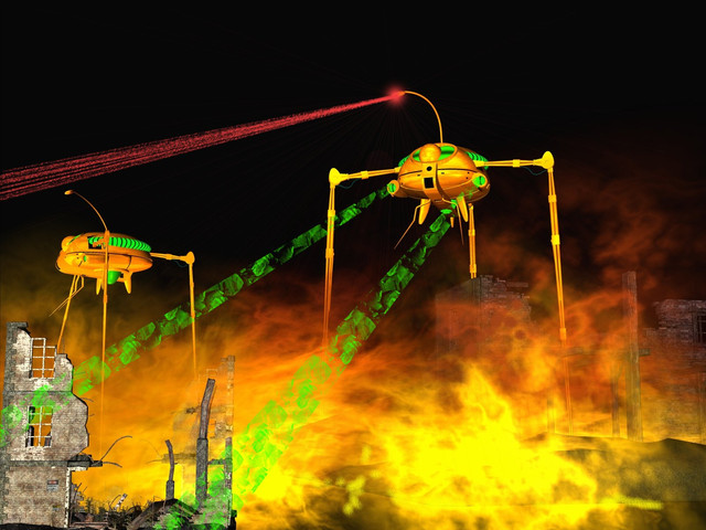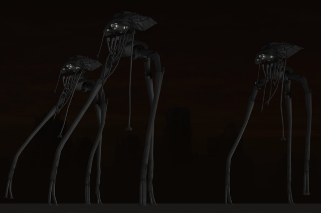 Another group of tripods scour the landscape for surviving humans to harvestThis time using my 2005 version of the fighting machines, which are pose-able (consists of 2 parts)