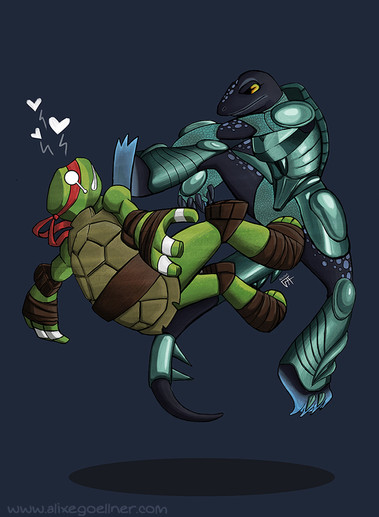 Haha! Just imagine Raph coming back to the guys with his face circled by teeth marks and having to explain to them he had a "french kiss accident"