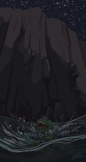But seriously, your water is super cool. I especially like the shape of the surface of the water. It really portrays his panicky flailing about without there being too much splashing. I always admire people who can draw or color water because, well, it doesn't have a color! And it's so see-through, and reflective, and doesn't hold a specific shape, and yeah, it's hard. So kudos to you!