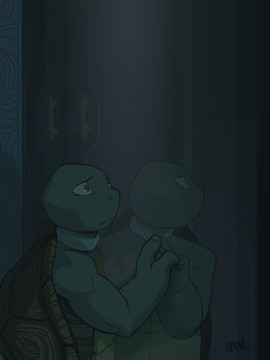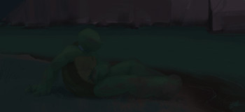 This was a quick practice, I think it took me and hour or so, to try and color with flat colors only. I turned out very cool especially because coloring water is super hard for me ...but then of course I had to go and slap a bunch of filters across it!Anyway have another illustration from that fanfic I'm writing. No, Raph does not have fun in this fic at all!