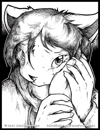 Regardless, I think you did a good job with the emotions on this character. I see nothing wrong with it. One other thing that I really like is the way you drew the hair on both characters and the fur on the girl's tail (I can't draw hair properly to save my life )