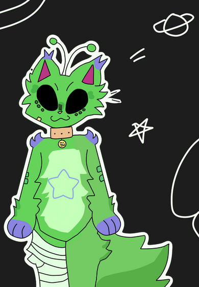 #digitalart #cartoon #originalcharacter #fursona #alien #antennae #cat #feline #furry #furryanthro #galaxy #green #greenfur #greenhair #hair #male #oc #purple #purplesweater #space #star #stars #sweater #purpleclothes #furrycharacter