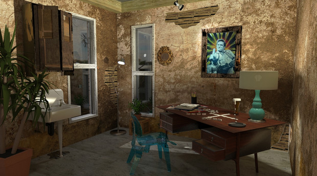 A room to a televisual play that may need a sombre mood involving study and reflection away from the chaos of the tele being on all the f***ing time.Rendered using Daz Carrara 7.0