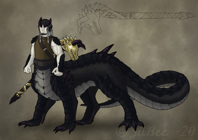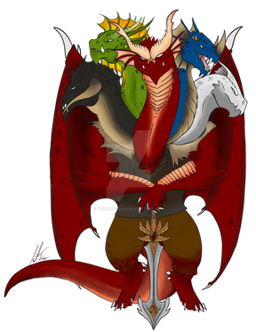 #axe #color #digital #dragon #dragoness #fantasy #hydra #personage #sketch