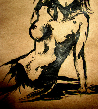 Wip que je ne sais pas comment terminer, donc je le poste tel quel quand mΓͺme( Brou de noix, gouache blanche, stylo blanc)