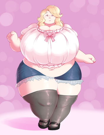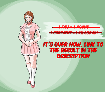 Result of thisΒ fimif.deviantart.com/art/1-FAVβ¦Her original weight was 52 Kg (with a height of 160 cm), and she gained about 108 Kg (the comments had to have a -4 since the description stated that only one comment per person would count), so she reached 160 Kg.