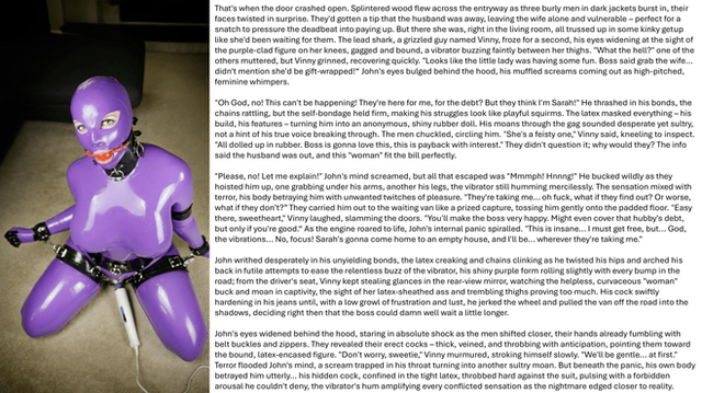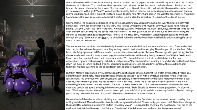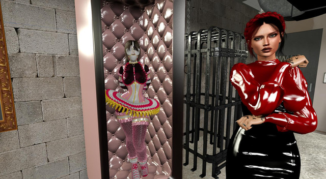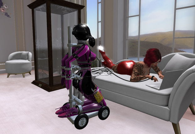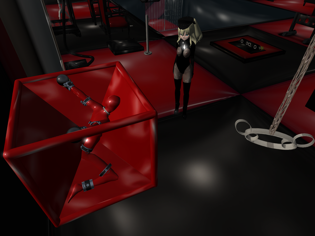 Zelda got more and more creative with her punishments for her two slaves - the warehouse seemed like it was a bit too dim for her ever since some fixtures broke, so she made the best use of one of her slaves and turned her into a temporary chandelier until the electrician was available.This is another image that was commissioned for an upcoming ebook by noonereallyimportan - Zelda and Rose's assistant are both their OC.