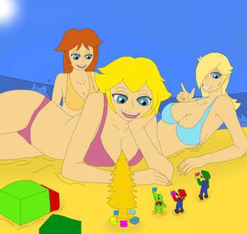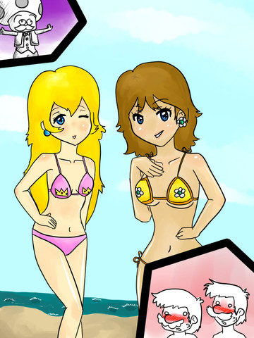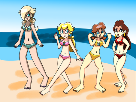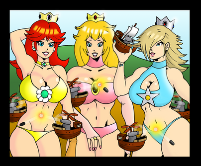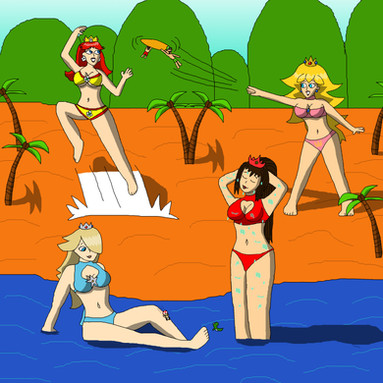 This is a request from ChaosKnightXZHe requested for Peach, Daisy, Rosalina, Paulena, Mona, Princess Apple and Captain Syrup in bikinis as giantesses. He wanted them to have fun within Peach's castle. The inside of the castle is based on Super Mario 64.