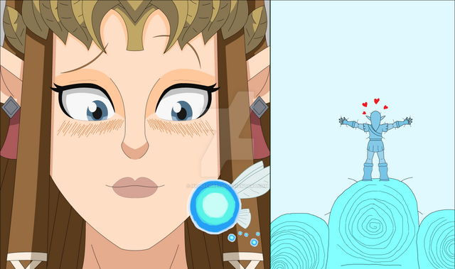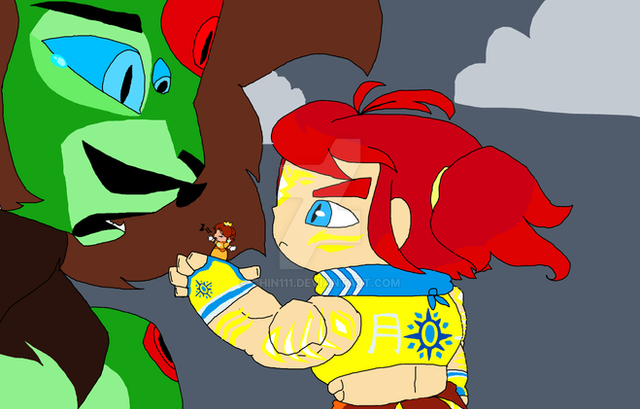 So here's Zoe, someone whom is already small having the villain Ripto shrunken in size and is placed on the palm of her hand with Elora looking on from the behind.
