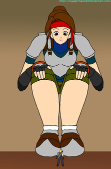 For his half, he wanted Tifa as a giantess in Midgar as she along with Cloud are fighting against Shrina soliders. They open fire against her, which doesnt effect her.