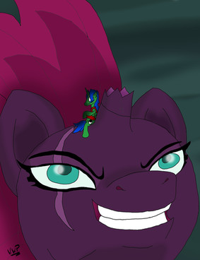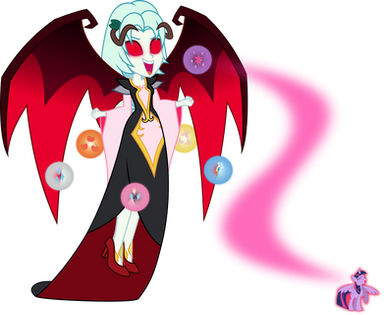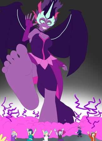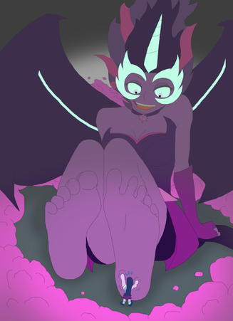he requested for an edited version of Midnight Scales but instead featuring Twilight Sparkle being trapped between her dark alter ego Midnight Sparkle's breasts.