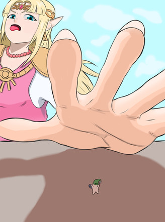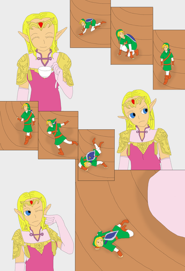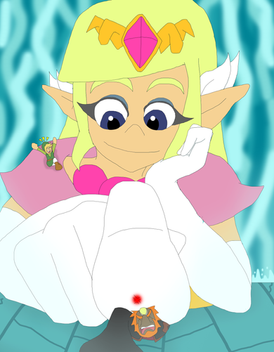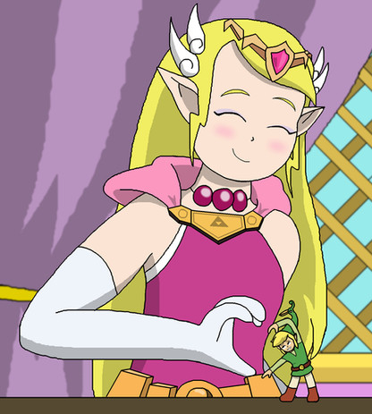 He requested for Toon Zelda looking down scared at the sight of a Minish Ben statue when Toon Link hiding while laughing.