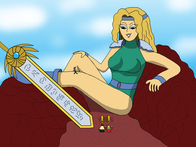 For his half, he wanted pic of a shrunken Chrono defending his giant mother, Gina within their home from some tiny monster that she's afraid of, similar manna of how people tend to be afraid of insects or rodents.